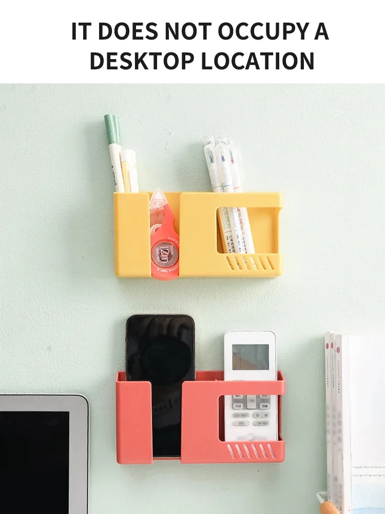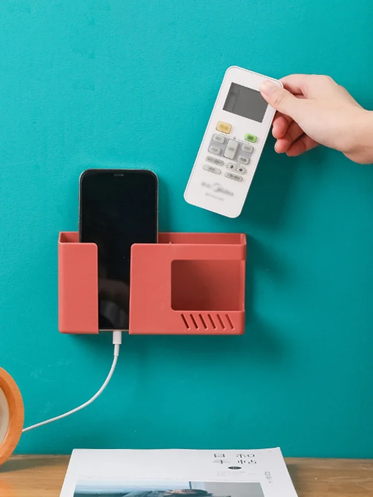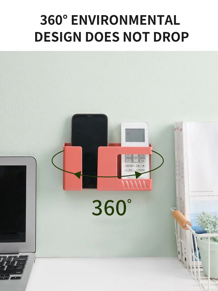 1PC Wall-Mounted Non-Punching Remote Control Storage Box Rack TV Air Conditioning Mobile Phone Charging Rac