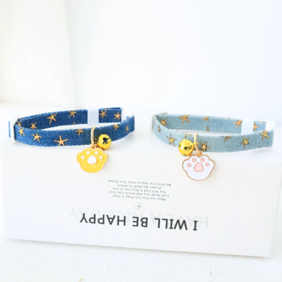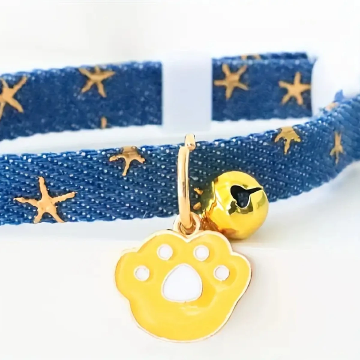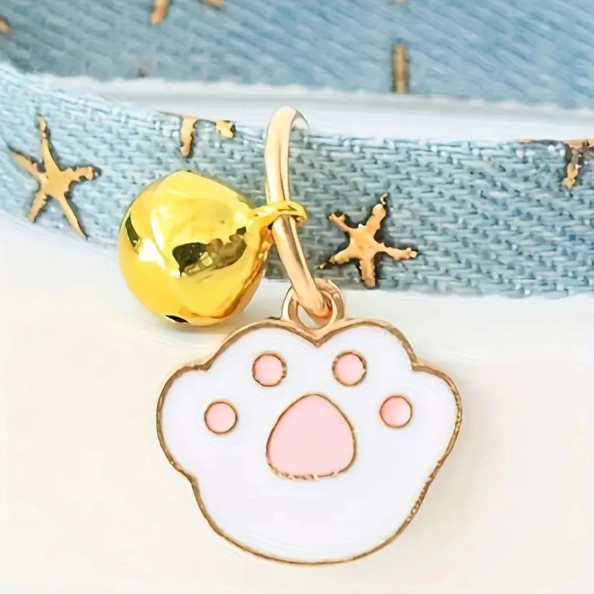 pet collar with bells and safety buckles, cute denim punk style accessories, suitable for cats and dogs